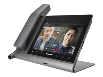 The Crestron Flex UC-P8-T-C-HS-I desk phone provides a premium video collaboration solution for use with the Microsoft Teams intelligent communications platform. It offers Full HD quality video and audio calling, capability to view and zoom the shared content, and full-duplex hands-free speakerphone capability in an elegant desktop design. It features a large 8 in. color touch screen display, built-in Full HD camera with privacy shutter, and hearing aid compatible handset. Each phone can be synced with a Microsoft Teams account with contacts, schedules, voicemails, and other preference settings appearing on the phone's touch screen.