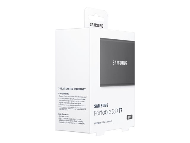 Samsung T7 MU-PC2T0T - SSD - kryptert - 2 TB - ekstern (bærbar) - USB 3.2 Gen 2 (USB-C kontakt) - 256-bit AES - titangrå