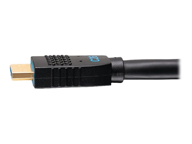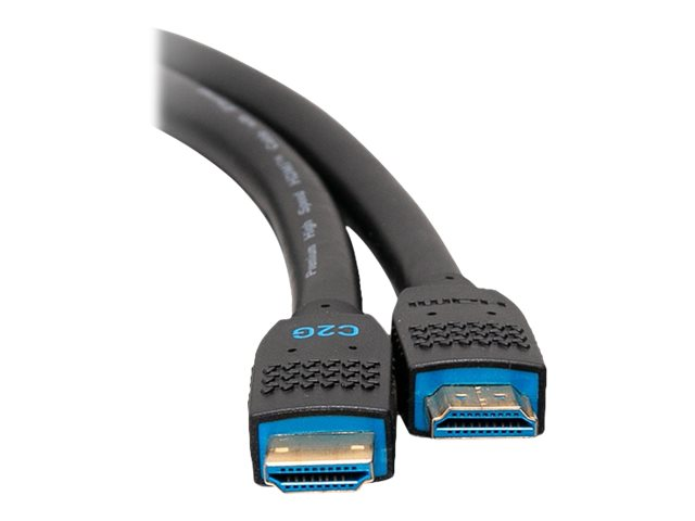 C2G Performance Series Certified Premium High-Speed HDMI Cables have been tested to conform with the Premium HDMI Cable Certification Program for high performance and ultra-reliability. This cable is ideal for HD Blu-ray and HD DVD video, experiencing resolutions up to 4K (4096 x 2160) at 60Hz, bandwidths up to 18Gbps, HDR for higher contrast ratios and vivid colors, plus 32 uncompressed digital audio channels to provide crystal-clear sound - perfect for home theater applications or digital signage. These cables are designed to exceed high measures of HDMI performance and will enhance video experiences with higher resolutions, increased speeds, and sharper images. They include integrated finger grips on the top, bottom, and sides, for easy insertion and removal, and the gripping connector shell has 2x greater port retention to keep your devices connected. The gold-plated connectors on the cable allow for better shielding, increased electrical conductivity, and durability. C2G Performance Series Certified Premium High-Speed HDMI Cable has been tested to deliver the full 18Gbps bandwidth required by the specifications for Premium High-Speed HDMI Certification. The cable also supports Consumer Electronic Control (CEC) commands, allowing communication between devices connected through the HDMI ports.
