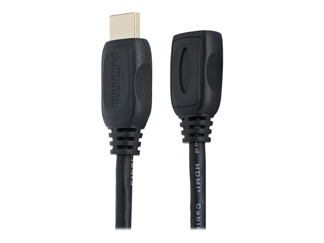 The HDEXT2M HDMI extension cable (2m) features an HDMI 19-pin (male) connector on one end and an HDMI 19-pin (female) connector on the other, providing an extra 2-meter connection distance between your HDMI-enabled devices.