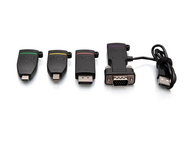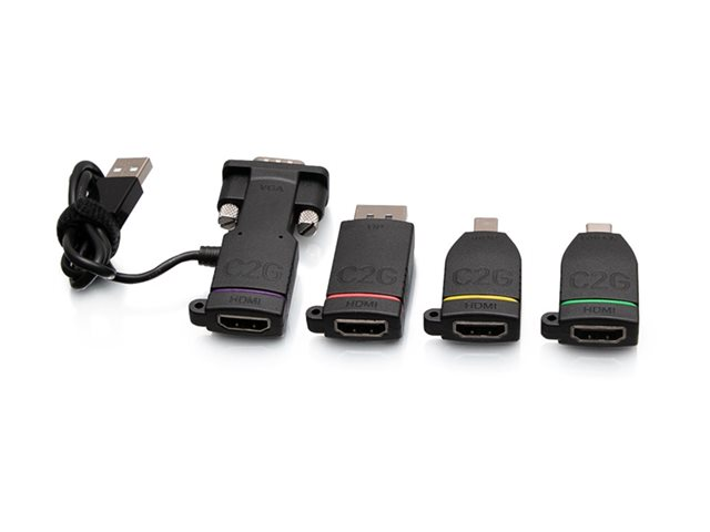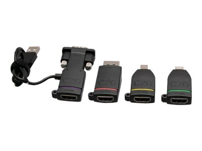 C2G Retractable Universal Mount 4K HDMI Adapter Ring with Color Coded Mini DisplayPort, DisplayPort, USB-C, and VGA - Videoadaptersett - svart - 4K-støtte