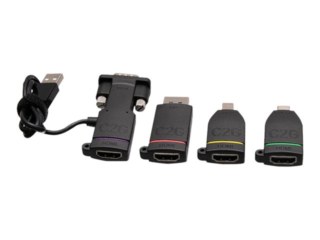 C2G Universal 4K HDMI Adapter Ring with Mini DisplayPort, DisplayPort, USB C, Lightning, and VGA - M/F - Videoadaptersett - svart - 4K-støtte
