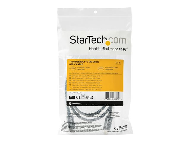 This Thunderbolt 3 to Thunderbolt 3 cable lets you deliver video, data and power to your Thunderbolt 3, USB 3.2 and DisplayPort devices. At 0.8 meters in length, the Thunderbolt cable provides added flexibility and distance when connected to your devices.