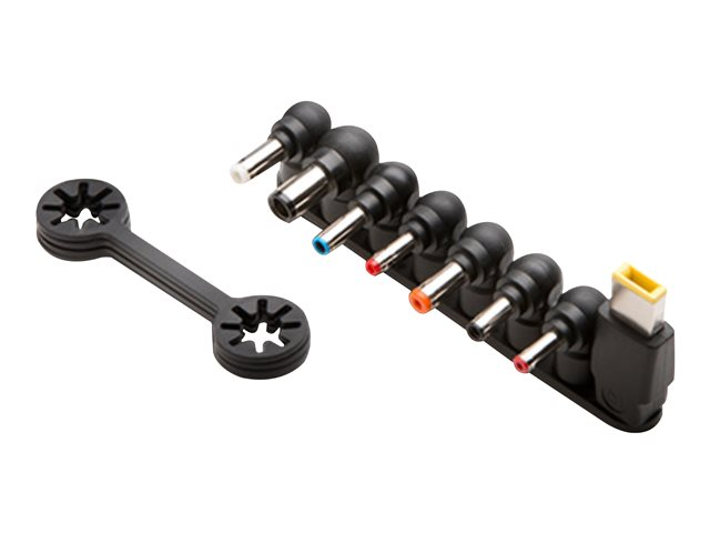 • 8 power tip adapters can be dongle-connected for quick access and provide connectivity options for Dell, HP, Lenovo and other leading manufacturers (retention rings included)