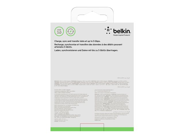 Belkin 3.0 USB-C to USB-A Adapter - USB-adapter - USB-C (hann) reversibel til USB-type A (hunn) - USB 3.0 - 3 A - svart