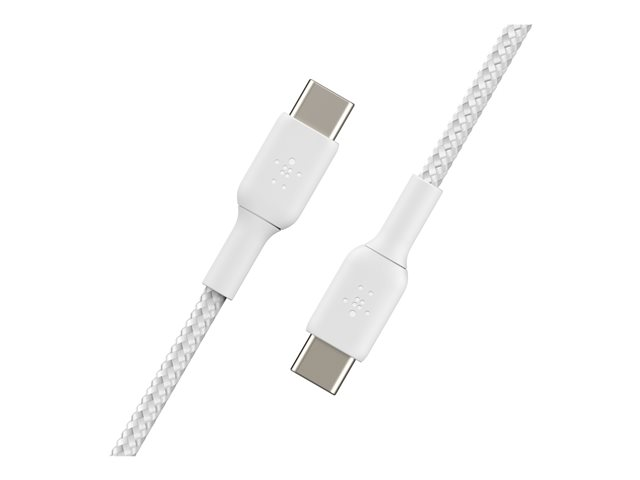 Belkin BoostCharge - USB-kabel - USB-C (hann) til USB-C (hann) - USB 2.0 - 3 A - 2 m - USB Power Delivery (60W), flettet kabel - hvit CAB004BT2MWH