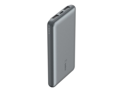 Belkin BoostCharge - Strømbank - 10000 mAh - 15 watt - 3 A - 3 utgangskontakter (2 x USB, 24 pin USB-C) - på kabel: USB-C - romgrå BPB011BTGY