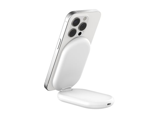 Belkin BoostCharge - Trådløst ladestativ - magnetisk, sammenleggbar, med Qi2 + AC-strømadapter - 15 watt - 3 A - Fast Charge, Power Delivery 3.1 - hvit WIB007VFWH