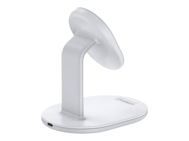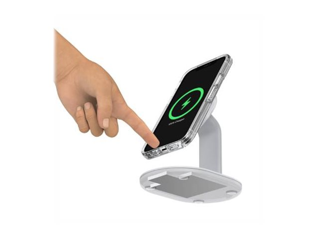 Sleek, compact Charger Stand for MagSafe with small footprint and magnetic attachment is the ideal iPhone resting place at home and in the office. Set the stand in a handy place where you can monitor all the connections coming across your iPhone and interact with your phone while it charges.