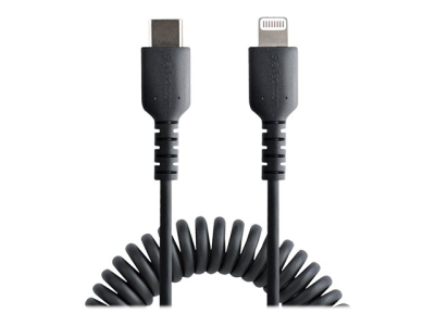 StarTech.com 1m (3ft) USB C to Lightning Cable, MFi Certified, Coiled iPhone Charger Cable, Black, Durable and Flexible TPE Jacket Aramid Fiber, Heavy Duty Coil Charging Cable - Rugged USB Lightning Cable - Lightning-kabel - 24 pin USB-C hann til Lightning hann - 1 m - svart - rullet sammen