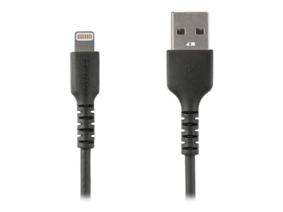 StarTech.com 3 ft(1m) Durable Black USB-A to Lightning Cable, Heavy Duty Rugged Aramid Fiber USB Type A to Lightning Charger/Sync Power Cord, Apple MFi Certified iPad/iPhone 12 Pro Max - iPhone 7/8/11/11 Pro - Lightning-kabel - USB hann rett til Lightning hann rett - 1 m - dobbeltisolert - svart RUSBLTMM1MB