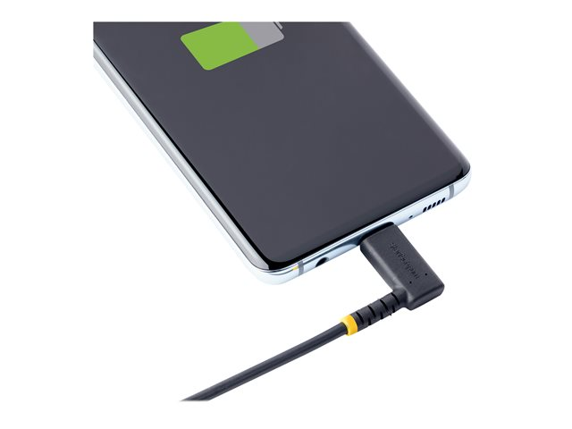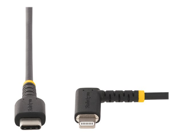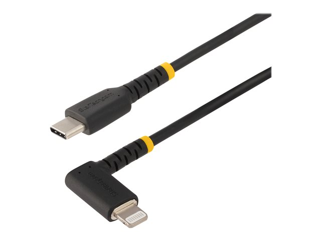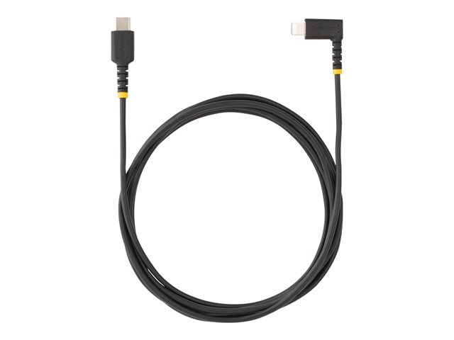 StarTech.com 6ft (2m) Durable USB-C to Lightning Cable - Right-Angled Heavy Duty Aramid Fiber USB Type-C to Lightning Charging/Sync Cord - Apple MFi Certified - Rugged iPhone Lightning Cable - Lightning-kabel - USB-C hann til Lightning hann - 2 m - svart RUSB2CLTMM2MR