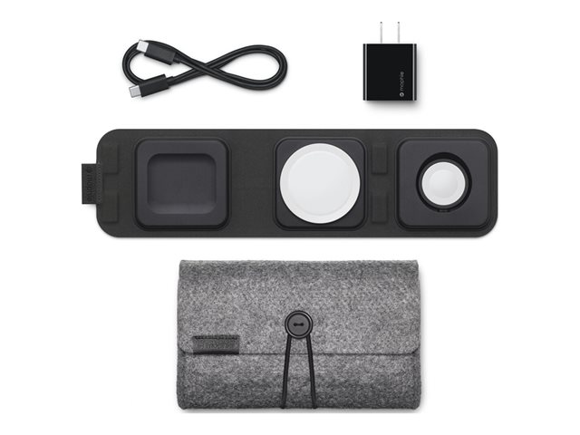 mophie 3-in-1 - Trådløs ladepute - med MagSafe + AC-strømadapter - 15 watt - grå - Europa 401311507