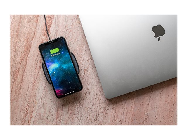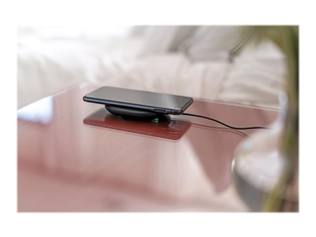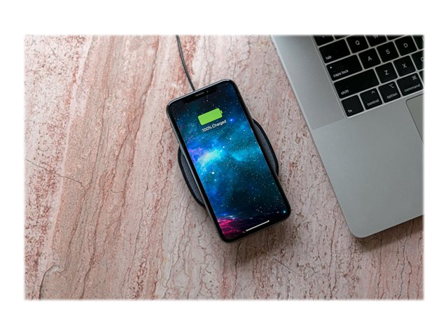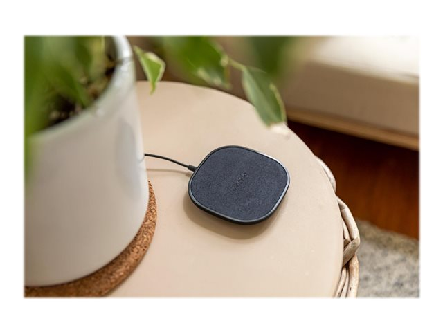 Ikke la størrelsen lure deg. Denne trådløse ladeplaten slår til med sin raske ladekompatibilitet. Den trådløse ladeplaten lader kompatible smarttelefoner og trådløst tilbehør effektivt og raskt. Bare plasser din Qi-aktiverte enhet på platen, og ladingen begynner ved kontakt. I tillegg gir det førsteklasses stoffet snev av stil til ethvert skrivebord eller bordplate.