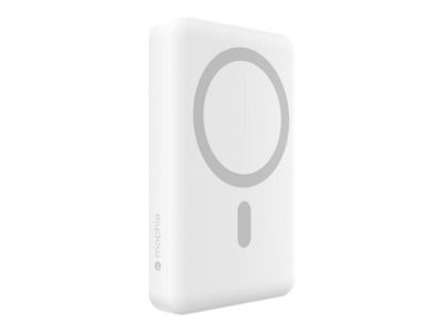 The mophie snap+ wireless power bank by ZAGG is designed to keep cellular phones powered up on the go. With a 10,000 mAh capacity, it delivers a reliable charge, supporting wireless charging via Qi standards. Featuring magnetic fixation, this power bank easily attaches to devices, allowing for convenient use wherever needed. It also includes a built-in kickstand, enabling portrait or landscape orientation for versatile viewing angles while charging. The 15 W of power provided ensures quick replenishment, making it an essential tool for modern users.