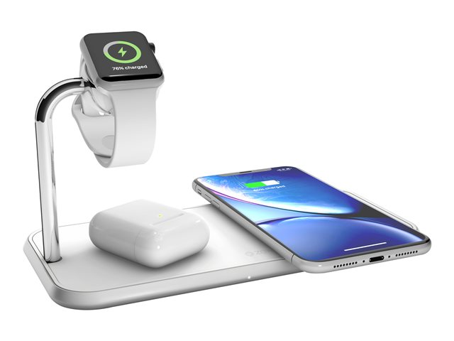 ZENS Dual+Watch Aluminium Wireless Charger - Trådløs ladematte + AC-strømadapter - 20 watt - Apple Fast Charge, FC - hvit - for Apple Watch ZEDC05W/00