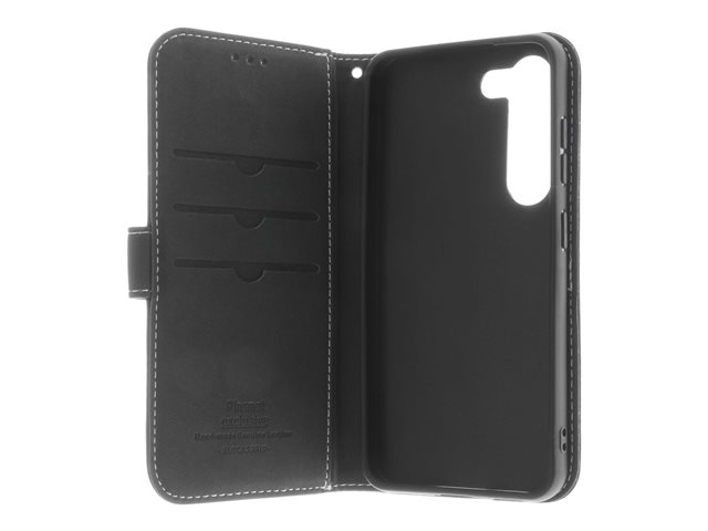Insmat Exclusive - Lommebok for mobiltelefon - ekte skinn, papir, polyuretan, kartong, bomull, aluminiumsfolie, bronse, termoplast-polyuretan (TPU) - svart - for Samsung Galaxy S23+ 650-3135
