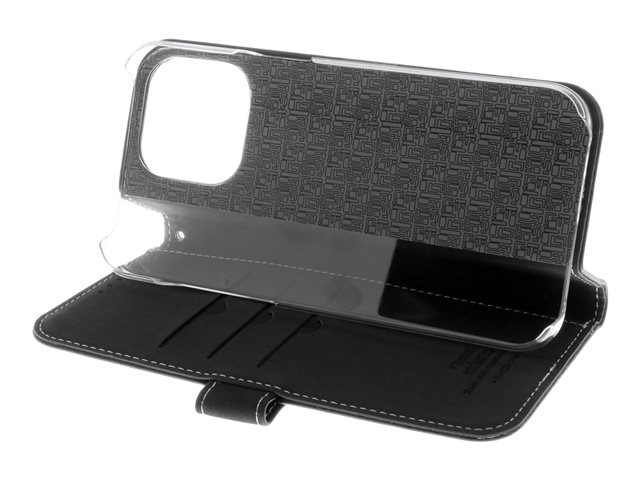Insmat Exclusive - Lommebok for mobiltelefon - lær, kartong+papir+aluminiumsfolie, polykarbonat (PC) - svart - for Apple iPhone 15 Pro Max