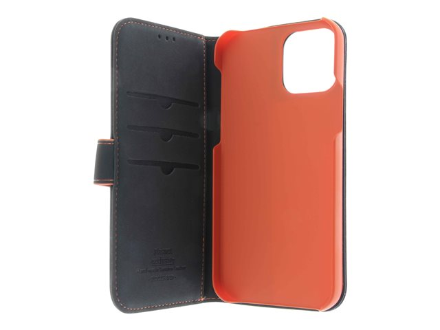 Insmat Exclusive - Lommebok for mobiltelefon - lær, kartong+papir+aluminiumsfolie - svart - for Apple iPhone 12 mini