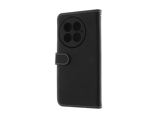 Insmat - Lommebok for mobiltelefon - ekte skinn, kartong+papir+aluminiumsfolie, termoplast-polyuretan (TPU), bomullssting - svart - for OnePlus 13