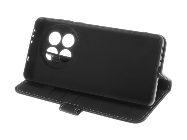Insmat - Lommebok for mobiltelefon - ekte skinn, kartong+papir+aluminiumsfolie, termoplast-polyuretan (TPU), bomullssting - svart - for OnePlus 13 650-3311