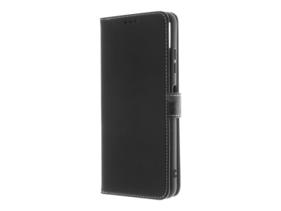Insmat - Lommebok for mobiltelefon - ekte skinn, termoplast-polyuretan (TPU), polyuretanpolstring - svart, galvanisert bronsering - for Samsung Galaxy A22 5G
