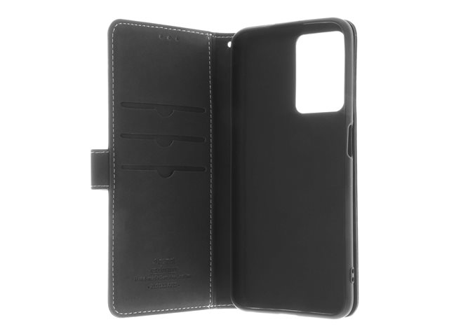 Insmat - Lommebok for mobiltelefon - ekte skinn, termoplast-polyuretan (TPU), kartong+papir+aluminiumsfolie, bomullssting - svart - for OPPO A16s