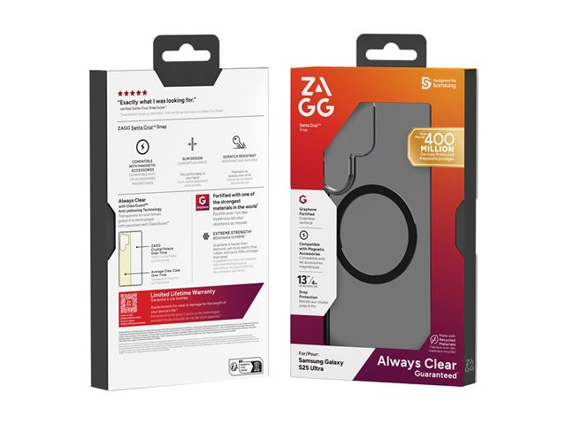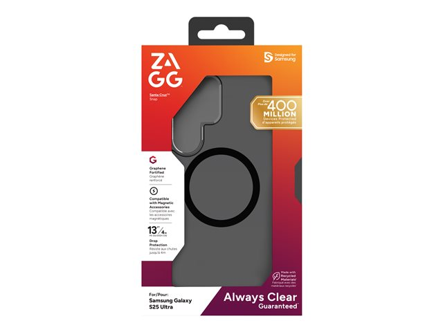 The Zagg Santa Cruz Snap is a protective cover designed for cell phones, offering functionality and style. Crafted from lightweight graphene, this back cover ensures a comfortable and secure grip, preventing slips and drops. With a slim design, it easily fits into pockets and bags while maintaining a sleek silhouette. This case provides protection against drops and scratches, with the ability to withstand falls from heights up to 4 m. The thoughtful design includes support for wireless charging, making it convenient for users who prefer effortless charging without removing their case. Moreover, this product is environmentally friendly, made from 70% post-consumer recycled content, reflecting a commitment to sustainability.