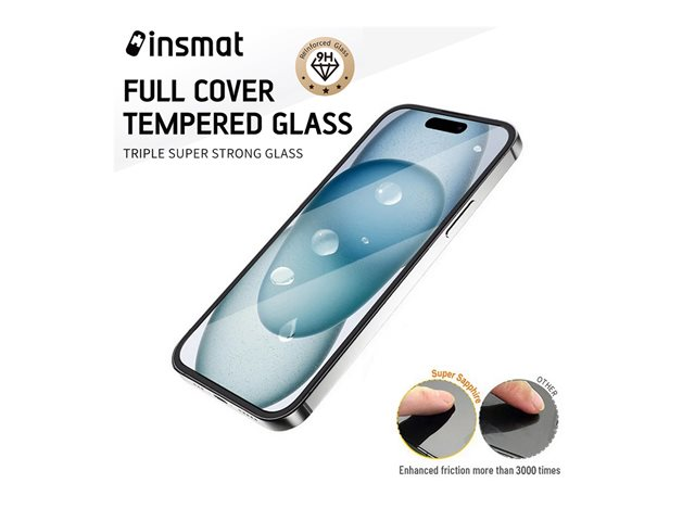 The Insmat screen protector offers durability and protection for cellular phones. Made from tempered glass with a 9H hardness rating, it ensures defense against dirt, impacts, and friction. Designed for easy installation, this accessory includes a No-DUST installation frame along with wet and dry cloths for a seamless application process. Its oleophobic coating helps keep the screen clean, making it a choice for those looking to maintain their device's condition.