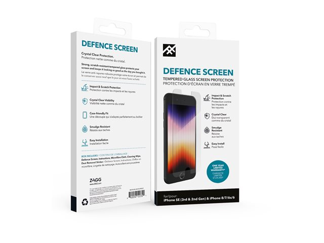 The ZAGG InvisibleShield Defense screen protector is a premium accessory designed to safeguard your cellular phone's display from everyday wear and tear. Made from durable glass, it shields your device from scratches and impacts, ensuring long-lasting protection. Its crystal-clear composition ensures that you enjoy unimpeded screen visibility and responsiveness, making it an ideal choice for maintaining the pristine condition of your phone's screen. Easy to apply, it offers a bubble-free installation, seamlessly integrating with your device for a smooth, virtually invisible shield.