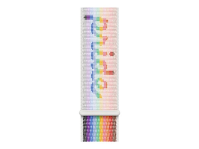 Den har samme design som Sport Loop-stroppen, med et dobbelt lag nylon laget av myke, pustende stofftråder. For å innlemme Pride-inskripsjonen er en del av de vevde fibrene vevd på nytt, noe som skaper en tredimensjonal vev som er behagelig å se og ta på, mens borrelåsstrimlene er godt festet til stroppen for ekstra styrke. Den har en praktisk, justerbar borrelås. Apple er stolt av å gi økonomisk støtte til organisasjoner som forsvarer rettighetene til LHBTQ+-samfunnet og kjemper for positive endringer i samfunnet.