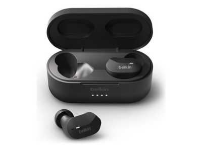 Experience the comfort, convenience, and quality of Belkin sound with the SoundForm True Wireless Earbuds. Meticulously crafted and designed for your active life, these IPX5-rated sweat and splash resistant earbuds provide comfort and protection from moisture. Get lost in enhanced deep bass and crystal clear mids and highs - at any volume - all while reducing outside interruptions with a comfortable and adjustable sealed in-ear fit. With intuitive touch controls and one-step Bluetooth pairing, these wireless earbuds are ideal for those on the go, at home, or at the office. The stylish and compact charging case provides an extended charge when you need it, up to 24 hours of playtime.