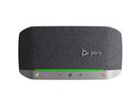 The HP Inc. Poly Sync 20 is a versatile smart speakerphone designed for portable electronics, delivering audio quality through its built-in microphone and mono sound output. With Bluetooth 5.1 technology, this device offers seamless wireless connectivity and sound performance enhanced by its Bass Reflex System, ensuring clear conversations and enjoyable music playback. The sleek design is complemented by touch controls for easy operation, allowing users to mute, adjust volume, power on/off, or answer and end calls effortlessly.