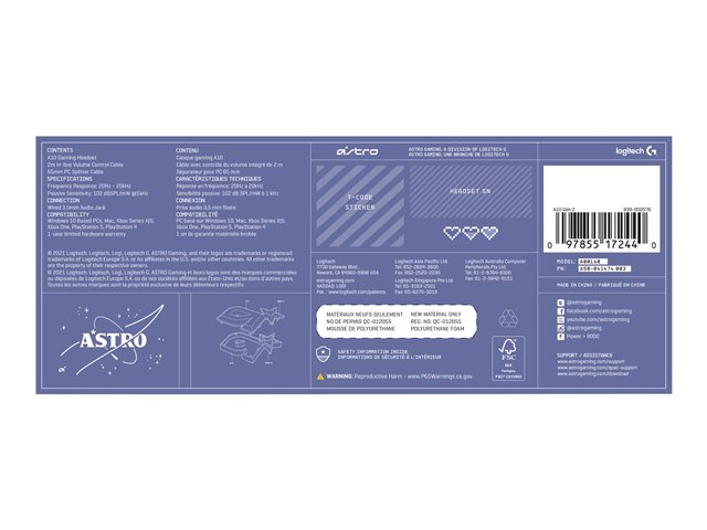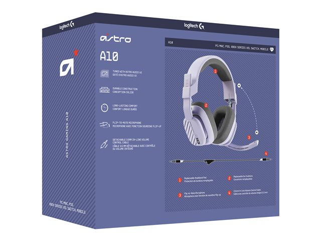 ASTRO Gaming A10 Gen 2 - Hodesett - full størrelse - kablet - 3,5 mm jakk - lilla 939-002078