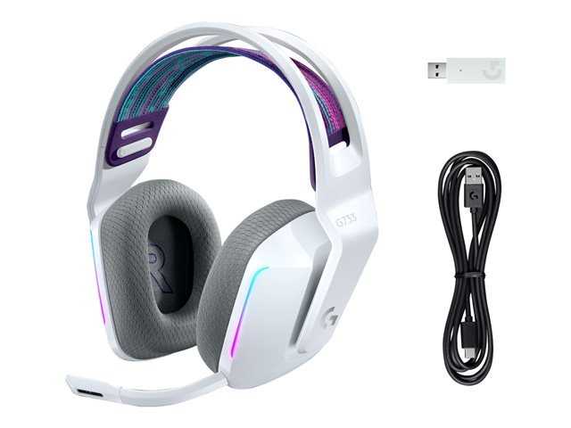 Endelig et hodesett som kan være like uttrykksfullt som deg. G733 er trådløst og utformet for komfort. Og det er utstyrt med all surroundlyd, talefiltrering og avansert belysning du trenger for mer stilig utseende, stemme og spill enn noensinne.