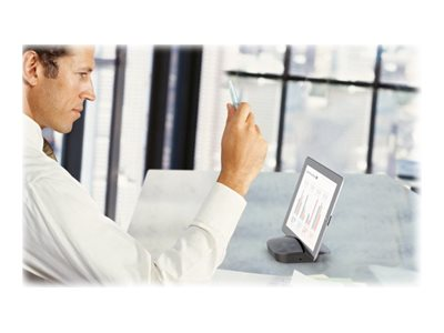 Avansert DSP-teknologi legger til rette for presis justering av både mikrofon og høyttaler, slik at samtaler blir mer virkelighetstro. Et integrert stativ gjør det mulig å plassere mobiltelefonen eller nettbrettet i riktig vinkel for videosamtaler uten risting og håndfri tilgang til mobilskjermen. Hør og bli hørt med lyd i ekte, bred frekvensrespons, som gjør at begge partene i samtalen kan nyte godt av en virkelighetstro kommunikasjonsopplevelse. Enkel usb-tilkopling til pc eller Mac, eller opprett parvis forbindelse med opptil åtte Bluetooth -enheter. Du kan enkelt opprette og avbryte forbindelse mellom nfc-aktiverte mobilenheter og P710e, ved å holde dem mot hverandre.