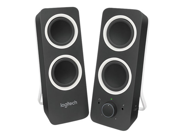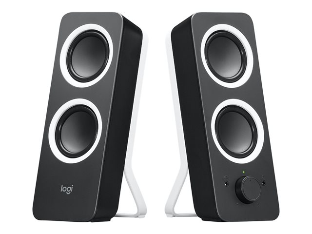 Disse 2.0-høyttalerne leverer 10 watts spisseffekt og fyldig, klar stereolyd, utmerket akustikk og en romfyllende lyd.