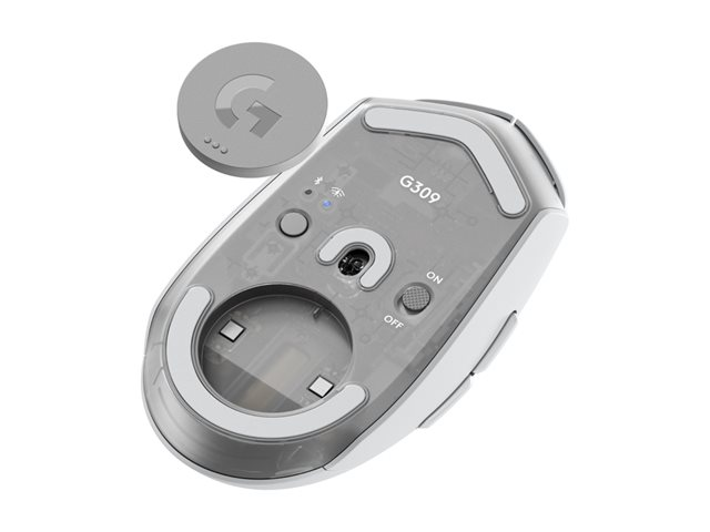 Logitech G G309 - Mus - gaming - optisk - 6 knapper - trådløs - 2.4 GHz, Bluetooth - USB Logitech LIGHTSPEED-mottaker - hvit 910-007208