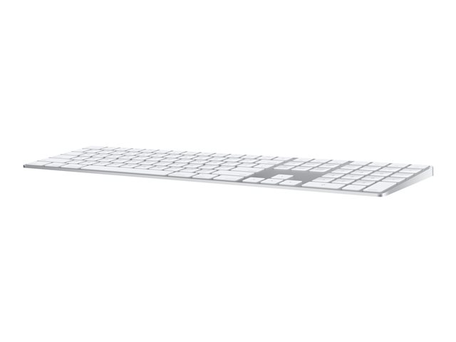 Magic Keyboard med numerisk tastatur har en utvidet layout med dokumentnavigasjonskontroller for rask rulling og piltaster i full størrelse for spilling. En saksemekanisme under hver tast gir økt stabilitet, mens optimalisert tastevandring og lav profil gir en komfortabel og presis skriveopplevelse. Det numeriske tastaturet egner seg også ypperlig til regneark og økonomiprogrammer. Og det innebygde, oppladbare batteriet har en utrolig lang levetid, slik at du kan bruke tastaturet i omtrent en måned eller mer mellom hver lading.