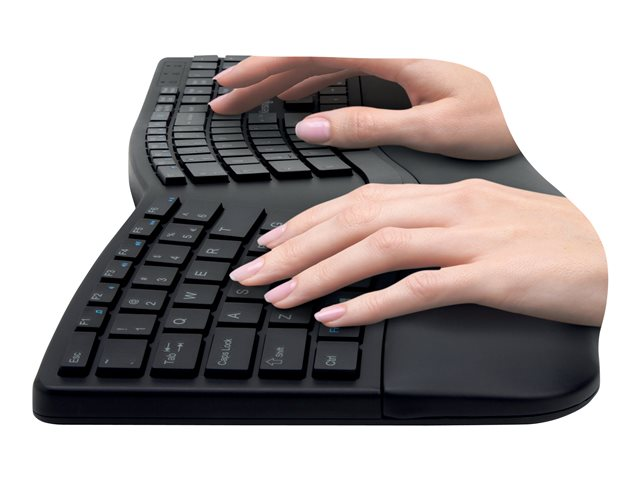 Kensington Pro Fit Ergo Wireless Keyboard - Tastatur - trådløs - 2.4 GHz, Bluetooth 4.0 - Pan Nordic - svart K75401PN