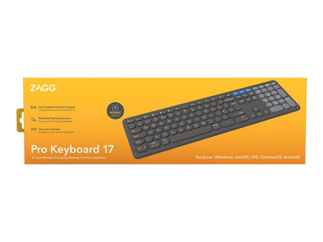 From the ergonomic design and spacing to the keystroke length and resistance, each ZAGG Pro Keyboard is engineered to reduce typing fatigue and provide a fast, comfortable, and efficient typing experience. Charge the ZAGG Pro Keyboards on a Qi-compatible wireless charging pad to ensure uninterrupted typing when you need it most. Qi charging eliminates the risk of a dead battery and keeps your workspace tidy and free from unnecessary cables. Users can also charge with the included Type-C cable. You can pair the ZAGG Pro Keyboards with up to three devices to seamlessly toggle between a phone, tablet, or computer from one keyboard. The keyboards have a Li-polymer battery that allows for three months of use before it needs recharging.