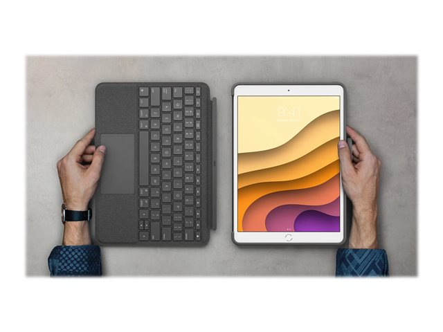 Logitech Combo Touch - Tastatur og folioveske - med styrepute - bakgrunnsbelyst - Apple Smart connector - QWERTY - Italiensk - grafitt - for Apple 10.2-inch iPad (7. generasjon, 8. generasjon, 9. generasjon)