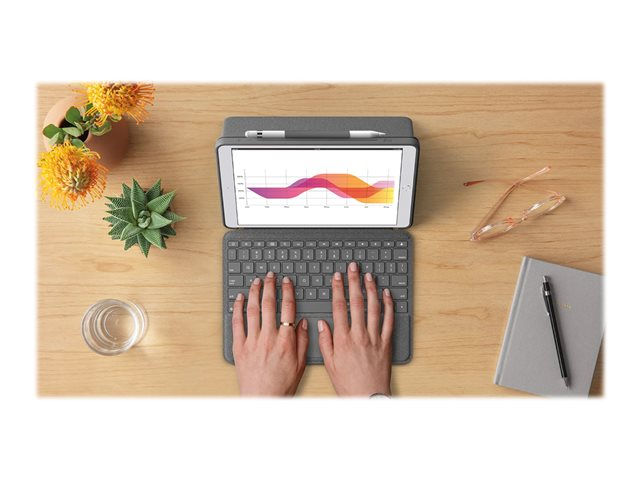Logitech Combo Touch - Tastatur og folioveske - med styrepute - bakgrunnsbelyst - Apple Smart connector - QWERTY - Italiensk - grafitt - for Apple 10.2-inch iPad (7. generasjon, 8. generasjon, 9. generasjon) 920-009626