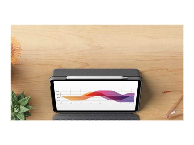 Logitech Folio Touch - Tastatur og folioveske - med styrepute - bakbelysning - Apple Smart connector - QWERTY - Storbritannia - Oxford-grå - for Apple 10.9-inch iPad Air (4. generasjon, 5. generasjon)