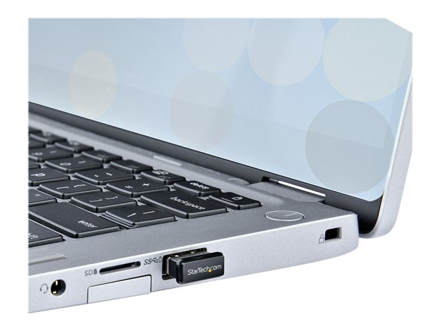 This Class 2 USB Bluetooth adapter with EDR/BLE is a compact-sized device that adds Bluetooth capabilities to a laptop or desktop computer. This adapter enables a wireless connection with multiple devices, using minimal power consumption, at distances of up to 33 ft (10 m).