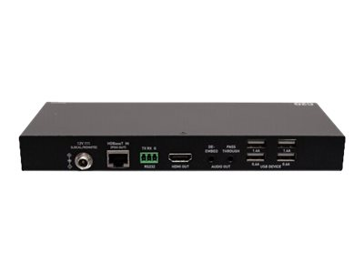 The HDMI HDBaseT + 3.5 mm, USB-B to A, and RS232 over Cat Extender Box Transmitter to Box Receiver - 4K 60 Hz allows a 4K HDMI source to be extended up to 130 feet to a 4K display using a single Cat6a Ethernet cable. This is an ideal solution where USB must be extended alongside HDMI video and audio to interactive whiteboards and displays in conference rooms, classrooms, lecture halls, and many other installations needs that are far beyond the length limitations of standard HDMI cabling.