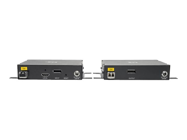 This complete transmitter and receiver system is recommended for video presentations in conference rooms, schools, trade shows, meeting facilities, houses of worship, retail settings and digital signage applications where the source and display are farther apart than conventional A/V cables allow. The B127F-1A1-SM-DD extends 4K video and stereo audio signals from a DisplayPort (DP) source device to a DisplayPort monitor up to 6.2 miles (10 kilometers) away via user-supplied duplex singlemode LC fiber cabling.