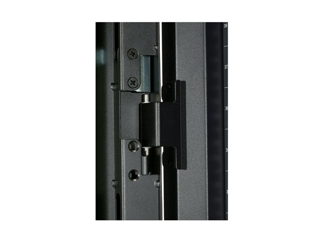 - Mounts two APC metered PDUs in one rear channel;