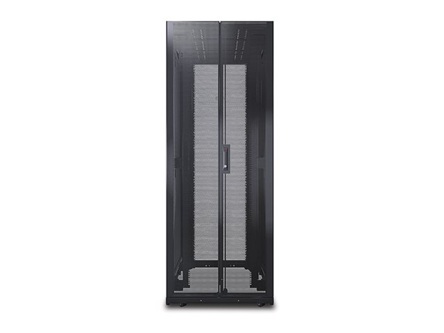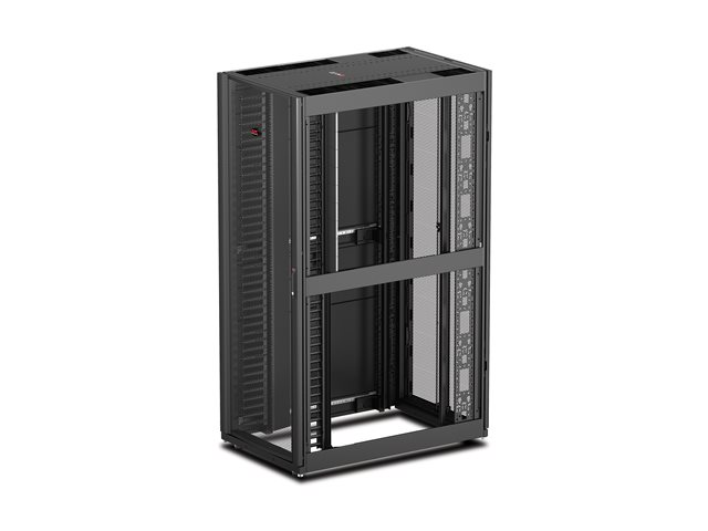 NetShelter SX networking enclosure expands APC's superior IT enclosure line with improved support for high density networking applications. Integrated high density cable managers and improved cable access roof provide support for large cable bundles. When combined with the side airflow duct kit, the networking enclosure ensures complete isolation of cold intake and hot exhaust air for large switches and SAN directors.