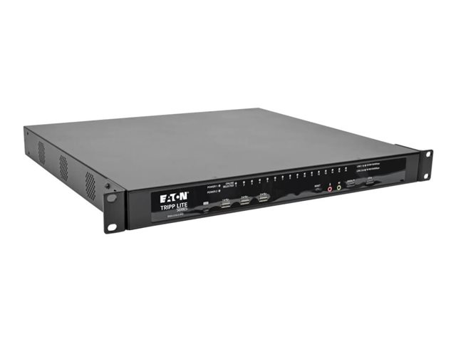 Tripp Lite's 16-port NetDirector Cat5 IP KVM Switch is the optimal solution for remotely controlling multiple computers (combination of PS/2, USB and Serial) by up to 3 (1 Local and 2 Remote) independent, simultaneous users. Both DVI and VGA console ports are included for connection of either a DVI or VGA monitor. High video resolution: up to 1920 x 1200 @ 60Hz - 24 bit color depth for the local console; up to 1920 x 1200 @ 60Hz with 24 bit color depth for remote sessions at up to 164 ft. (50 m). A full-screen graphical OSD with multi-level authentication (Super Administrator, Administrator and User) allows you to quickly and efficiently manage your installation, and can be displayed in English, German, Russian, Japanese, traditional Chinese and simplified Chinese. Critical events on the installation can be tracked via email notification, SNMP traps, the Windows based log server or Syslog server. Accessing the connected computers is a breeze; view multiple computers at the same time using panel array mode, automatically sync USB mice, access the on-screen keyboard feature in numerous language formats. Virtual Media allows computers connected using a B055-001-USB-V2 Server Interface Unit to access DVD/CD drives, flash drives and other storage media as if they were directly connected to the computer. In addition, three USB ports are located on the front panel of the unit for use with Virtual Media or an external keyboard and mouse. Also located on the front of the KVM is a USB Mini-B port that allows for direct connection of a laptop for easy console operation of the switch. Other features include FIPS 140-2 level 1 security standards support, dual power supplies that allow the unit to continue running in the event one power supply stops receiving power, temperature sensors that control the speed of the unit's cooling fans, remote authentication support via RADIUS, LDAP, LDAPS and Active Directory, dial-in modem access and non-browser access using Windows and Java applications. Constructed of heavy-duty steel housing.